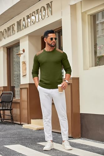 COOFANDY Mens Crew Neck Sweater Lightweight Knit Ribbed Pullover Casual Dress Round Neck Pullover Sweaters