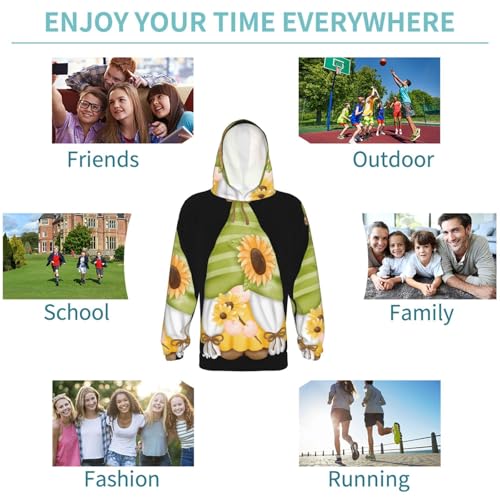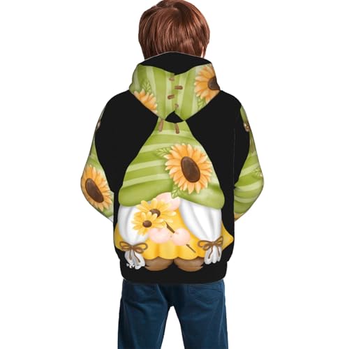 Sunflower Gnomes Kids Pullover Hoodies Boys Sweatshirts Girls Athletic Clothes with Pocket