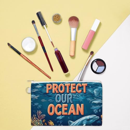 sought-after ! Protect Our Ocean Fashion Coin Purse Change Makeup Bag Canvas Pencil Pouch Travel