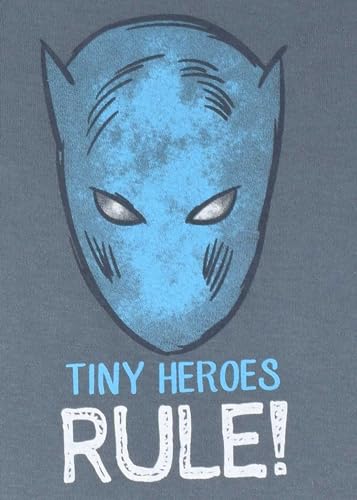 • Artwork on green bodysuit features screenprint of The Hulk with the phrase "Little Smasher"; Artwork on grey bodysuit features screenprint of The Black Panther with the phrase "Tiny Heroes Rule!"; Artwork on red bodysuit features screenprint of Spiderman with the phrase "remarkable Crawler"