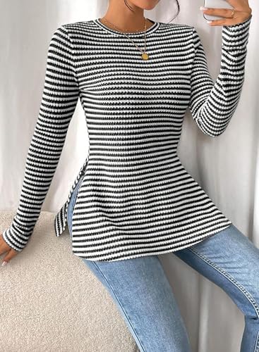 RANPHEE Long Sleeve Tops for Women 2025 Fall Fashion Comfy Slim Fit Crewneck Dressy Casual Shirts with Side Slit