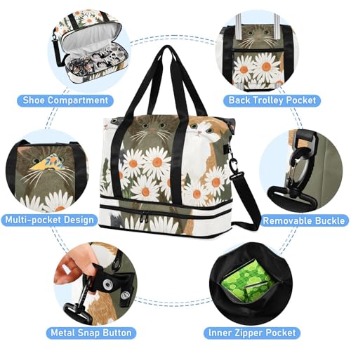 ALAZA Sports Duffel Bags with Toiletry Bag Set,Three Cat Travel Duffel Bags Multi Pockets Weekend Bag