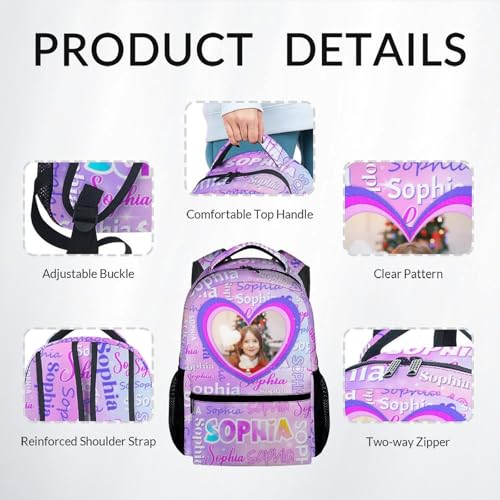 Personalized Backpack Set: Customize now, upload your favorite funny pictures, names or logos-whether they are family photos, friends pictures, cute pet image, our designers will carefully create a customized backpack for youDesigned for Comfort: Our school bookbag comes with adjustable shoulder straps and ergonomic design for comfort. Reinforced shoulder straps can be adjusted to your preference, supple foam sponge shoulder pads relieve pressureKids Backpack Set: This custom name backpack includes a roomy backpack, an insulated lunch bag, and a versatile pencil case. Our kids bookbag bundle the essentials together for the convenience of students of various agesDurable and Breathable Material: This girls bookbag is made from durable polyester and is built to last. The material not only offers breathability, but is also resistant to abrasion, making it a solid choice for everyday use and travelMultifunctional Schoolbag: This personalized school bag is available in a variety of photo customization options to suit all styles and needs. Ideal for back-to-school or any celebration, this is a thoughtful and practical choice Perfect for everyday use. premium materials and excellent craftsmanship ensure long-lasting durability.
