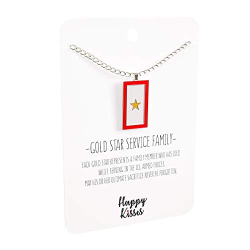 Material: MetalMetal type: AlloyChain type: AnchorBeautiful gold star flag necklace plated in 18K silver. Great detailed gift.QUALITY GUARANTEE. Strong necklace: if it breaks within three years we offer free replacement. Nickel free and hypoallergenic.Necklace Chain Length: 457mm (18) - Pendant dimensions: 30mm x 16.4mm (1.18in. x .65in.)Packaged with a sturdy message card that says “- Gold Star Service Family – Each Gold Star Represents A Family Member Who Has Died While Serving In The U.S. Armed Forces. May His Or Her Ultimate Sacrifice Never Be Forgotten.”Perfect for yourself or as a gift for a wife, mother, daughter, girlfriend, or any friend with a service member in the family who has paid the ultimate sacrifice. Perfect for everyday use. finest materials and excellent craftsmanship ensure long-lasting durability.