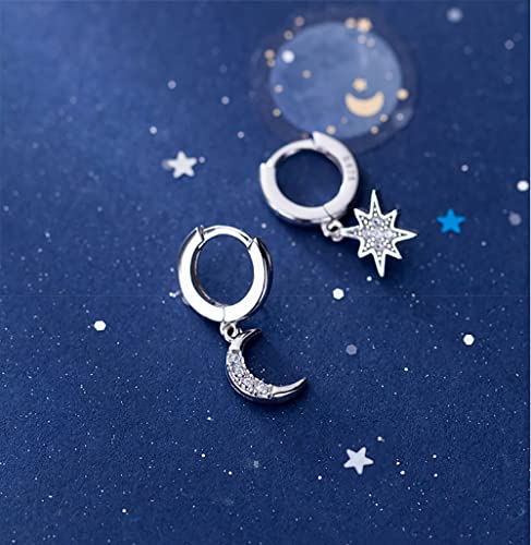 sought-after ! Reffeer Solid 925 Sterling Silver CZ Star Moon Drop Hoop Earrings for Women Teens Crystal Moon Star Hoop Earrings Dangle