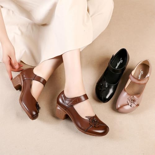 sought-after ! Ephirebra Women's Round Toe Mary Jane Chunky Heels Pumps Comfort Flower Hook and Loop Low Heel Dress Shoes