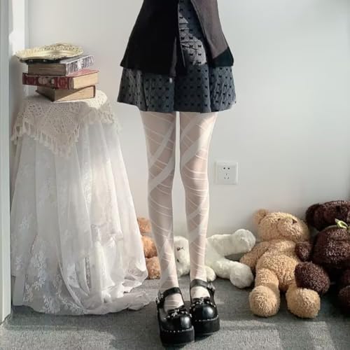 Bandage Patterned Tights for Women Sexy Mesh Sheer High Waist Breathable Stockings Pantyhose
