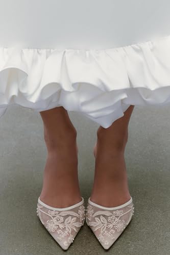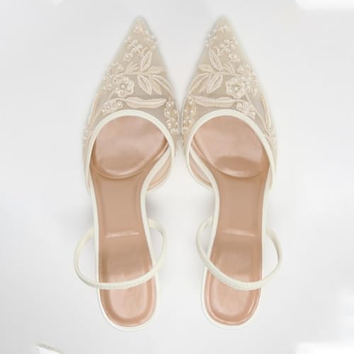 sought-after ! Goolita Beaded Embroidered Slingback Heels for Women, Sexy Pearl Kitten Heels Pointed Closed Toe Mesh Pumps Slip On Party Bridal Shoes for Wedding