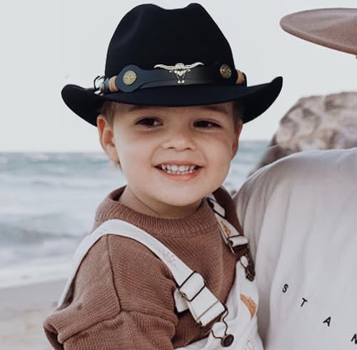 • 【Girls boys cowboy felt hat design】: Complete your western style with this black cowboy hat. Featuring a faux leather band with stars studded sure to catch everyone's attention