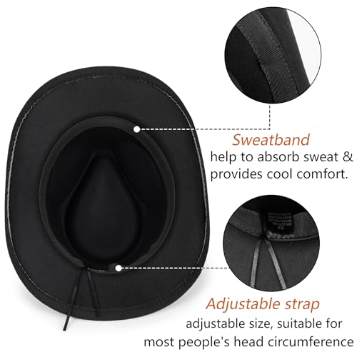 • 【Sun Protection】: This felt cowboy fedora hats for kids can protects your kids face from sunshine, flawless for indoor and outdoor use. The plush elastic sweatband protects western cowboy hat from sweat