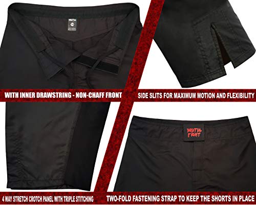 • MAXIMUM RANGE OF MOTION - The aggressive side slits and 4-way stretch crotch allowing you maximum range of movement during kicks, knee strikes and each of your mixed martial arts movements without any discomforts and range of flexibility providing a friction advantage when attempting submissions.