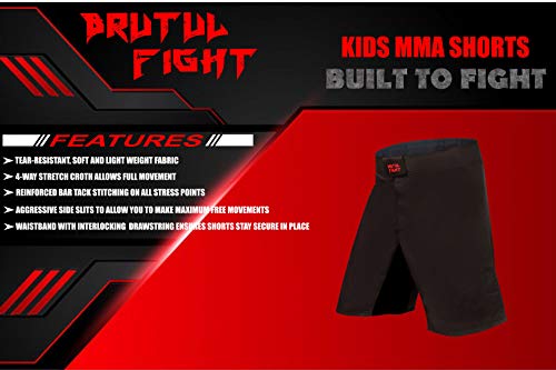 • DURABILITY & COMFORT – BRUTUL FIGHT Kid’s MMA shorts are specially designed for maximum durability and comfort with microfiber fabric (100% polyester) which dries quickly for ultimate comfort with gi or no gi, Smooth fabric is more cozy to wear and reduce friction when you grappling. BRUTUL FIGHT Kid’s MMA shorts are made with supreme durability, functionality, and complete breathability.