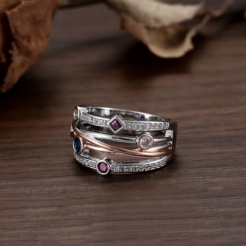 More information about White Gold Plated Geometric Lines Two Color Cubic Zirconia Boho Style Statement Ring Personalized Accessory Ideal for Women's Daily Casual Wear Party Holiday Anniversary fancy Jewelry Gift