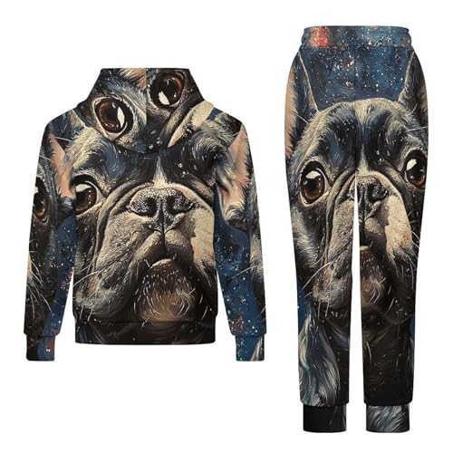 Boy's Girl's 2 Piece Outfits Graphic Sweatshirt Kid Long Sleeve Hoodie Set, French Bulldog Galaxy Universe