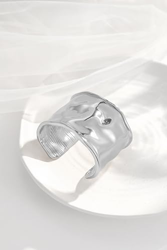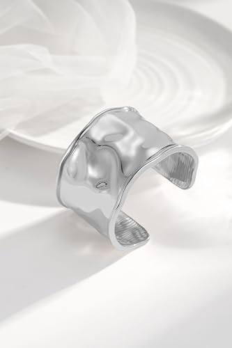 Chunky Cuff Bangle Bracelets for Women - 18K Gold & Silver Plated Hammered Wide Open Thick Wrist Cuff Bracelet, Irregular Trendy newly-released-age Statement Jewelry