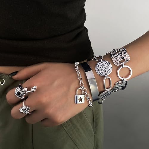 This KISS WIFE Vintage Silver Bracelets Set for Women Men, OT Toggle Clasps Bracelet, Heart Lock Hollowed Prints Bangles Chunky Cuban Link Chain Charm Bracelet Pack Punk women's Jewelry combines elegant design with practical functionality. Every detail has been carefully considered to ensure you get the premier possible experience. The first-class construction means this product will serve you well for years to come.