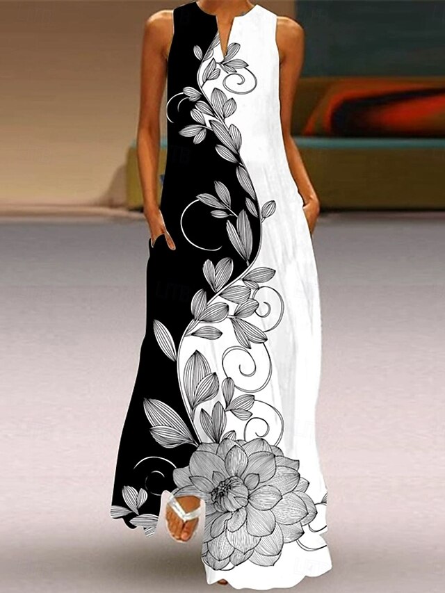 Why Choose Women's Maxi Dress Sundress A Line Dress Summer Dress Vacation Casual Boho Holiday Loose Fit Ombre Floral Graphic Sleeveless V Neck Notched Neck Black And White Light Yellow Magenta Black Summer?