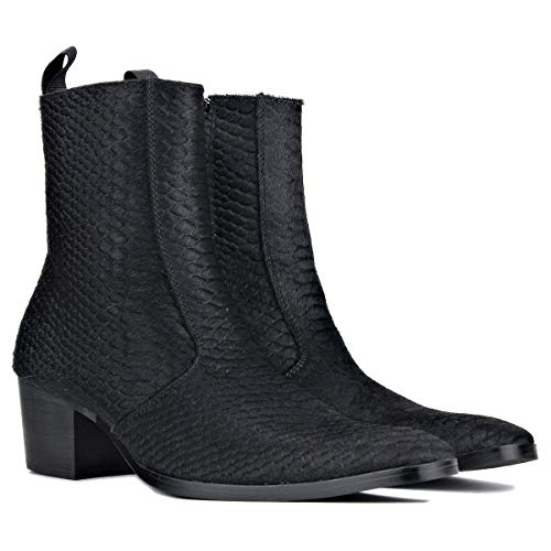 sought-after ! OSSTONE Men Chelsea Ankle Boots Leather Crocodile Print Pony Hair Chukka Boots with Side Zipper Heel Dress Boots JY021-A