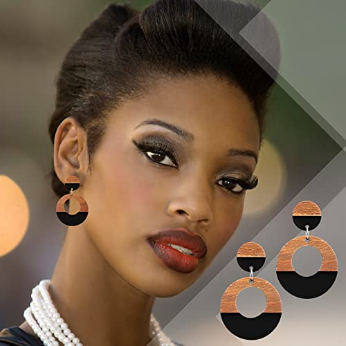 Henoyso 12 Pairs Wooden Earrings for Women Boho Dangle Geometric Lightweight Studs Resin Statement Earring