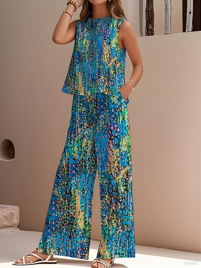 sought-after ! Women's Elegant Fashion Streetwear Two Piece Sets Blouse Vest Pants Trousers Sleeveless Crew Neck Outdoor Work Casual Floral Print Vacation Vintage Daily Holiday Blue Purple Fuchsia Summer Regular Fit