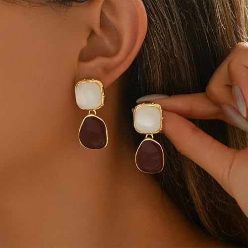 - Statement Gold Drop Earrings Dangly for Women Dainty exceptional White Dark Red Crystal Dangle Stud Earring Minimalist Geometric Prom Party Jewelry Gifts