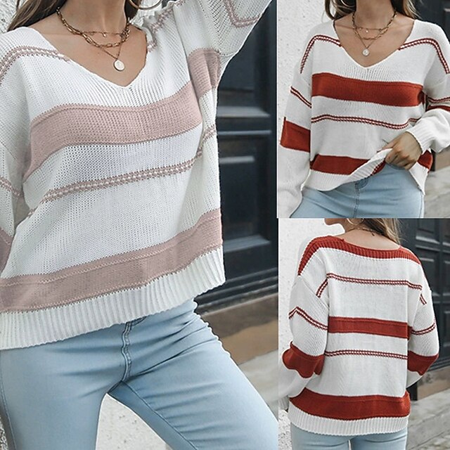 This Women's Pullover Casual Striped Chunky V Neck Knitted Long Sleeve Regular Tops Knit Daily Holiday Going out Pink Red Fall Winter combines elegant design with practical functionality. Every detail has been carefully considered to ensure you get the best possible experience. The magnificent construction means this product will serve you well for years to come.