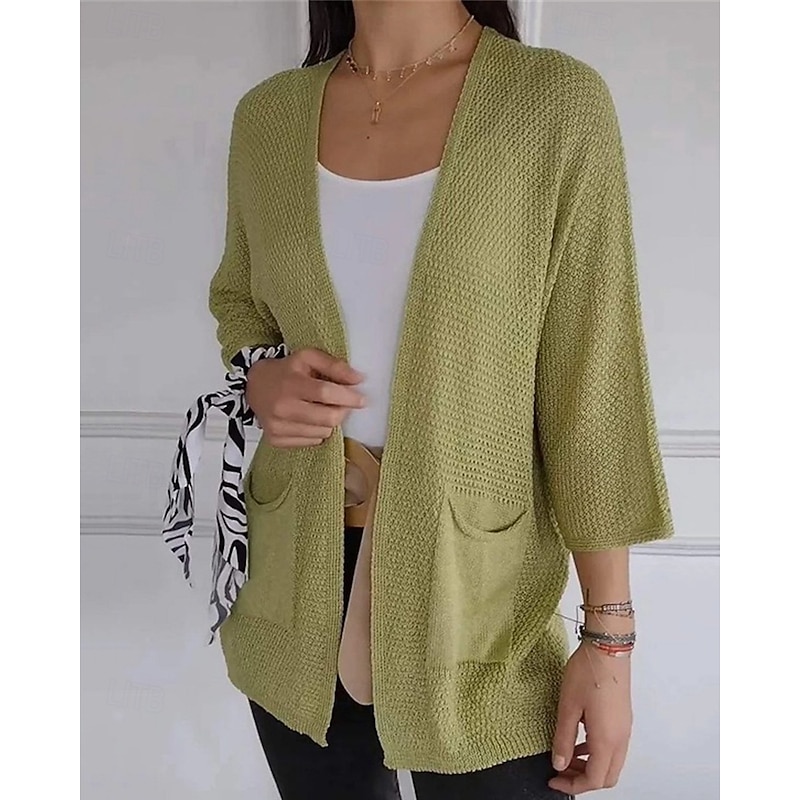 This Women's Sweater Cardigan Fashion Streetwear Daily Solid Color Ribbed Open Front Knitted 3/4 Length Sleeve Regular Tops Knit Holiday Going out Weekend Army Green Navy Blue Spring Fall combines elegant design with practical functionality. Every detail has been carefully considered to ensure you get the top possible experience. The superior construction means this product will serve you well for years to come.