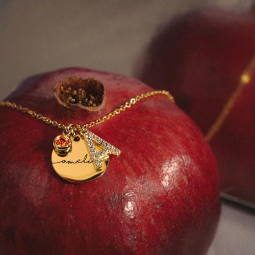 MignonandMignon Personalized Initial Birthstone Necklace for Women Gold Name a Necklace Coin Pendant Custom Jewelry for Mom Gifts for Her – CN-ZI-BS-N