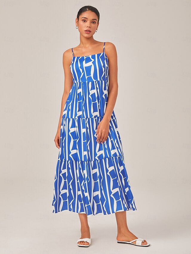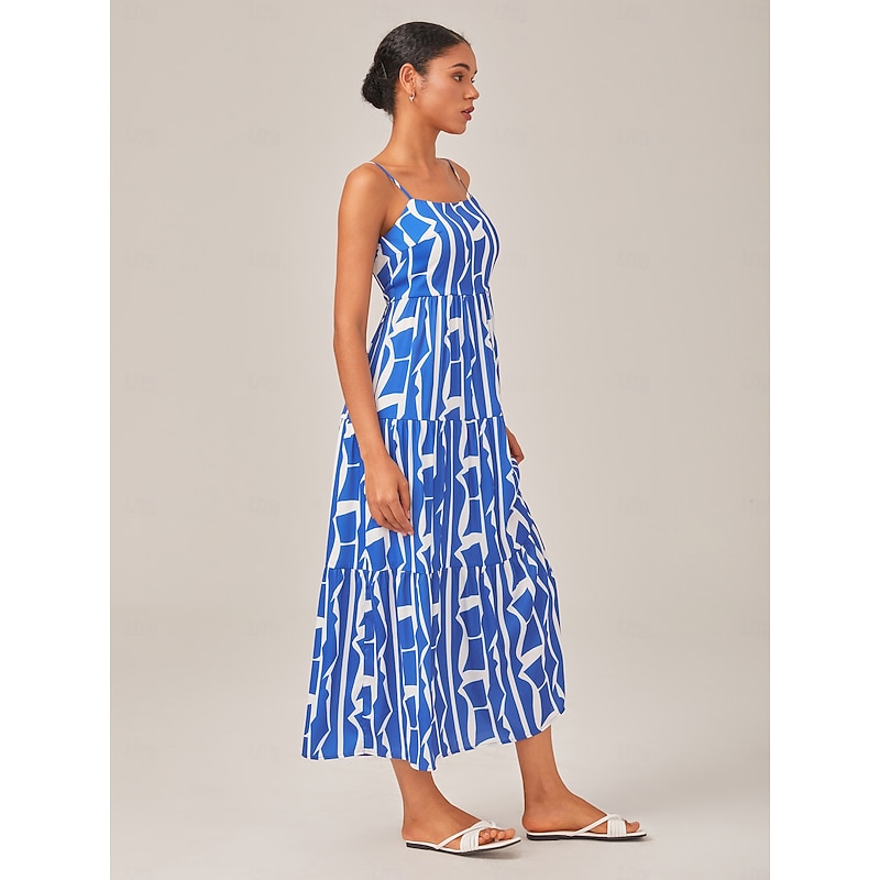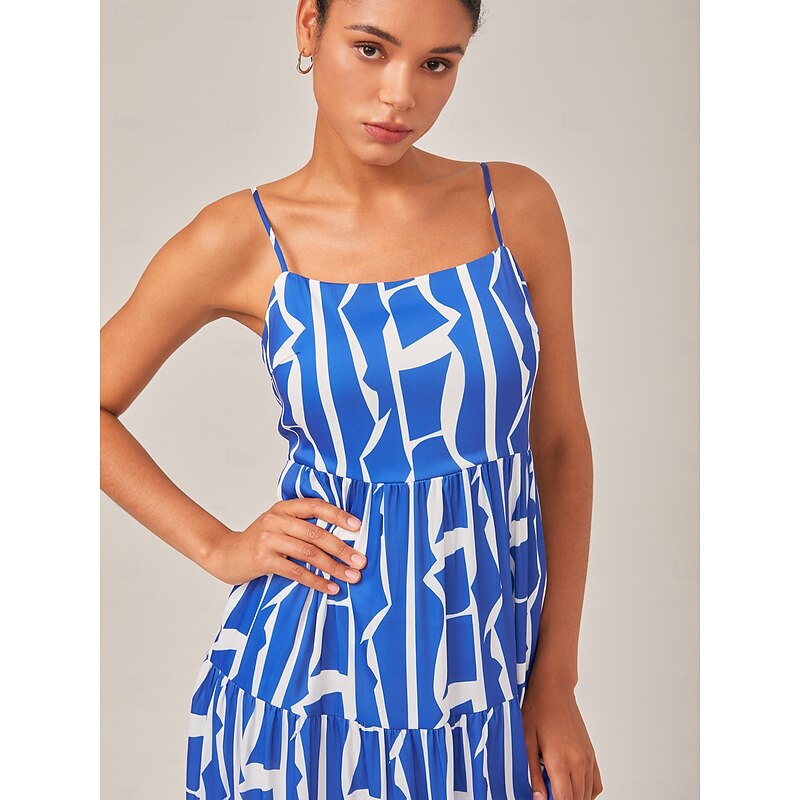 This Blue Geometric Pattern Spaghetti Strap Dress combines elegant design with practical functionality. Every detail has been carefully considered to ensure you get the foremost possible experience. The supreme construction means this product will serve you well for years to come.