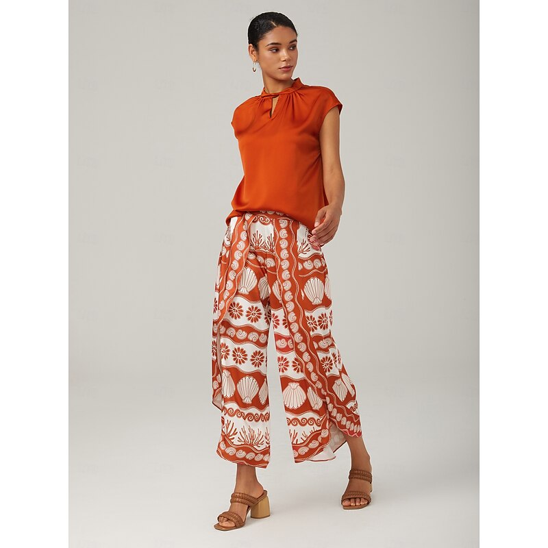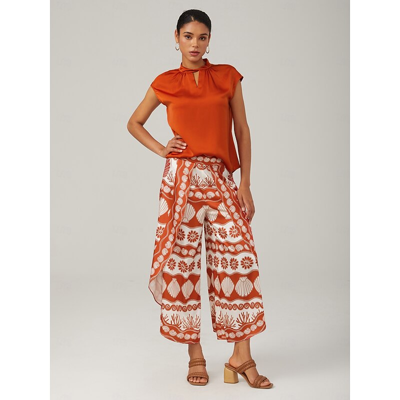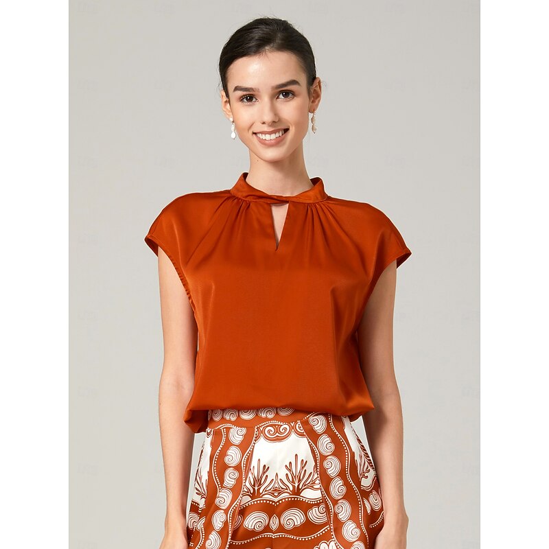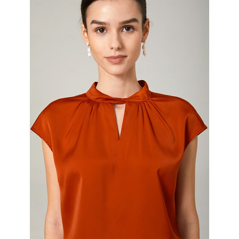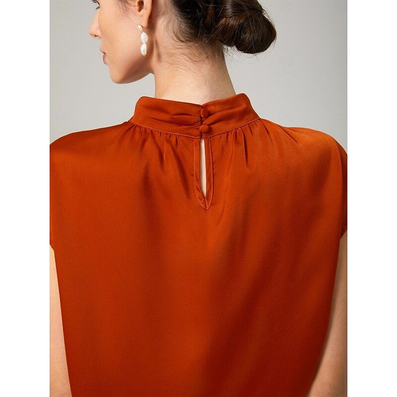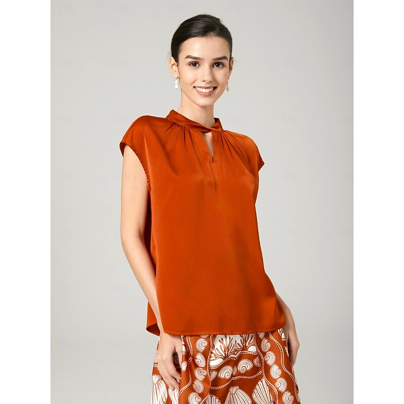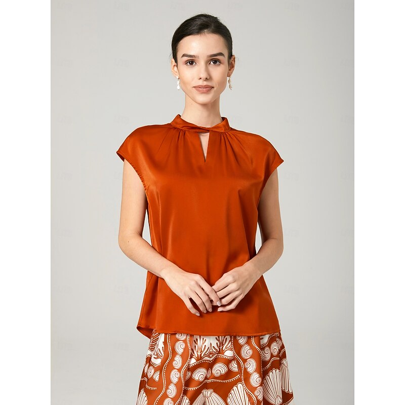 sought-after ! Orange stand-up collar sleeveless knotted top