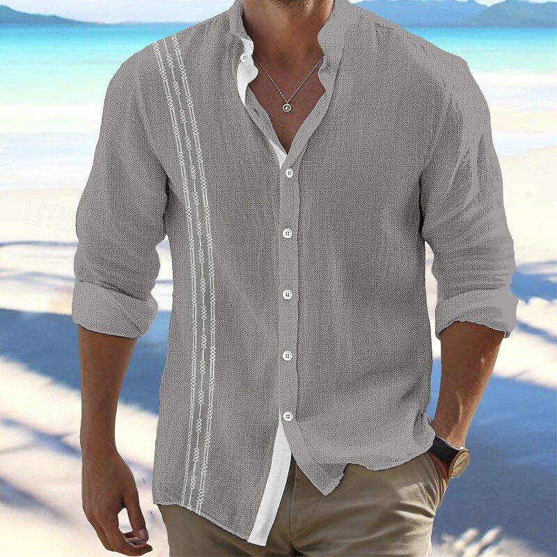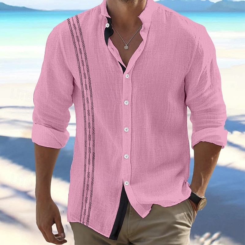 This Men's Shirt Linen Shirt Guayabera Shirt Band Collar Shirt Summer Shirt Beach Wear Vacation Curise Black White Pink Khaki Long Sleeve Standing Collar Summer Spring Clothing Apparel Embroidered combines elegant design with practical functionality. Every detail has been carefully considered to ensure you get the foremost possible experience. The supreme construction means this product will serve you well for years to come.