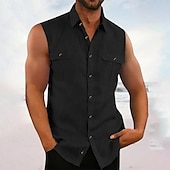 sought-after ! Men's Shirt Summer Shirt Casual Shirt Beach Shirt Button Up Shirt Black Blue Purple Green Sleeveless Plain Lapel Vacation Hawaiian Pocket Clothing Apparel Cotton Polyester Fashion Casual snug