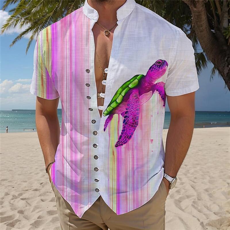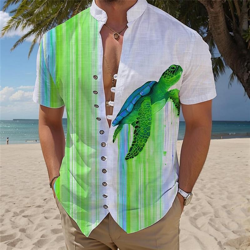 Highlights [Fabric and Material:] Crafted from lightweight polyester fabric, this shirt is designed to keep you cool and comfortable during warm summer days. The breathable material ensures a comfortable fit, ideal for enjoying the sun. [Fit and Comfort:] Offering a regular fit, this shirt is suitable for relaxed, casual outings. It's designed to provide ease of movement, so you can enjoy your vacation or daily activities in comfort. [Design Highlights:] Featuring a striking sea turtle print combined with vibrant tropical stripes, this shirt brings a playful and laid-back island vibe to your wardrobe. The mandarin collar and distinctive button placket with contrasting buttons add a modern and trendy touch. [Occasions:] Ideal for summer vacations, daily wear, and holiday gatherings, this Hawaiian shirt is a versatile addition to your wardrobe. Its bright colors and relaxed style make it perfect for beach outings or casual summer events. [Size Options:] Available in a wide range of sizes, including S, M, L, XL, 2XL, and 3XL, this shirt caters to diverse body types, ensuring a suitable fit for everyone. Perfect for everyday use. finest materials and excellent craftsmanship ensure long-lasting durability.