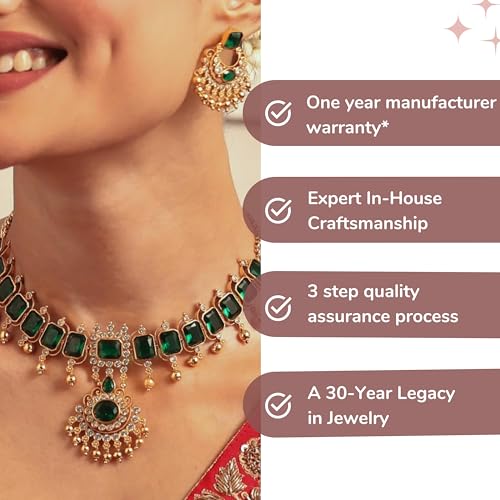 • IDEAL FOR TRADITIONAL OCCASIONS: Elevate your look for any traditional event. The TARINIKA Emerald Shine Choker is designed to be the outstanding accessory for weddings, festive celebrations like Diwali and Navratri, or any special function where you want to add a touch of traditional Indian charm and sophistication to your attire.
