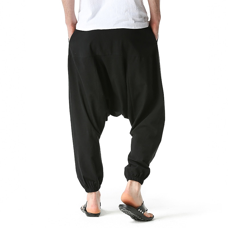 sought-after ! Men's Joggers Linen Pants Trousers Summer Pants Harem Pants Drawstring Elastic Waist Baggy Plain Outdoor Sports Knee Length Home Daily Holiday Boho Hippie Loose Fit Black Navy Blue Micro-elastic