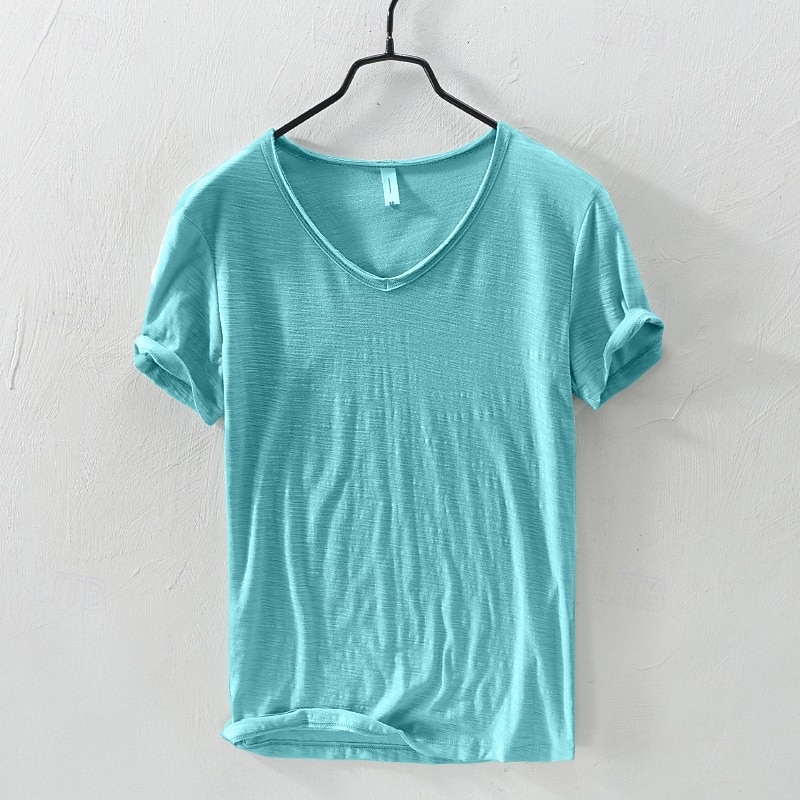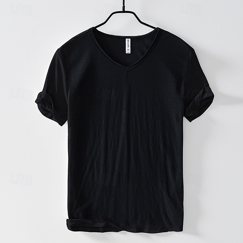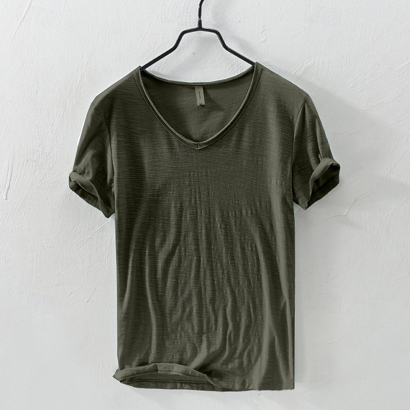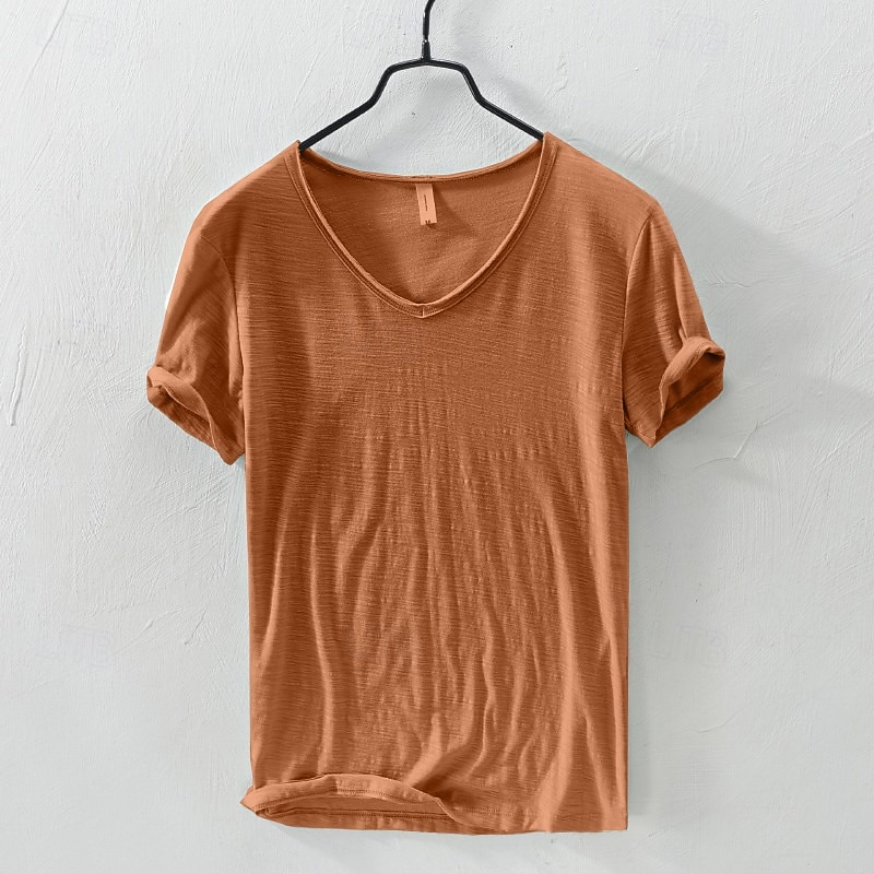 More information about Men's Cotton T Shirt Tee Top Short Sleeve Short Sleeves V Neck Summer every Seasons Plain Fashion Designer Basic traditional Style Basic Vacation Street Casual Camel Black White Top Tee for Men