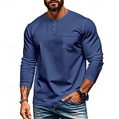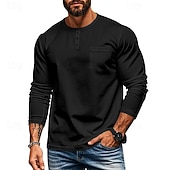 More information about Men's Henley Shirt Tee Henley Top Long Sleeve Solid Color Plain Fashion Designer Casual Pocket Buttons Henley Outdoor Casual Daily Spring Fall complete Seasons Black White Blue Henley T-Shirt
