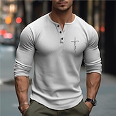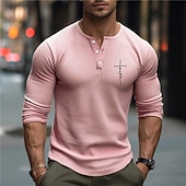 More information about Men's Graphic Faith Waffle Henley Shirt Casual Style traditional Style Long Sleeve 3D Print Fashion Designer Basic Outdoor Daily Spring & Fall Pink Blue Khaki Gray Henley Henley T-Shirt