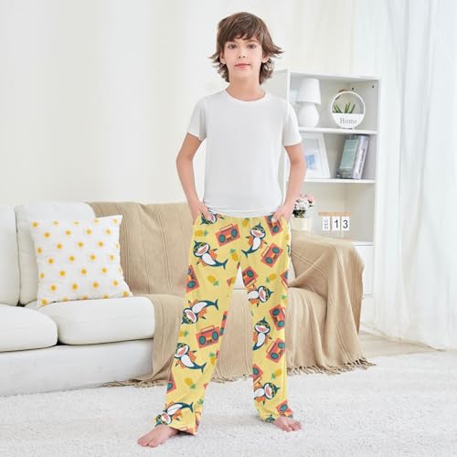 Funny Shark Pineapple Boys Long Pants plush Trousers Elastic Waist Kids Lounge Bottoms with Pockets S-XL