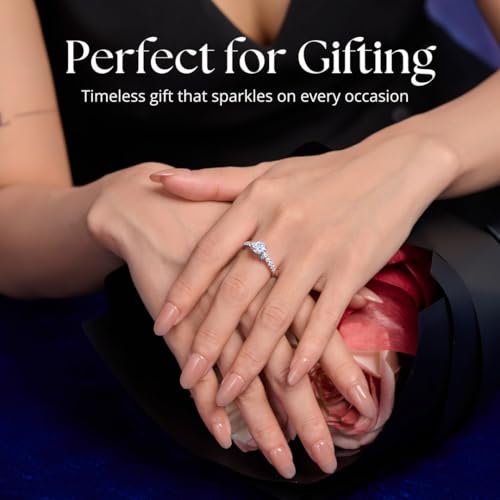More information about 1Ct Round Moissanite Solitaire Engagement Ring, D Color VVS1 - VVS2 Clarity, 925 Sterling Silver, Moissanite Anniversary Rings for Women, Wedding Rings for Women - Hidden Gems Jewelry - Size 5-10