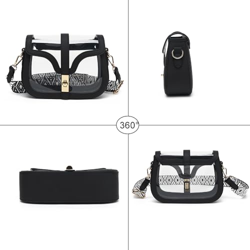 FAIME Clear Stadium Bag for Women Crossbody Cute Clear Bag for Stadium Event Concerts, See Through Purse With Guitar Strap