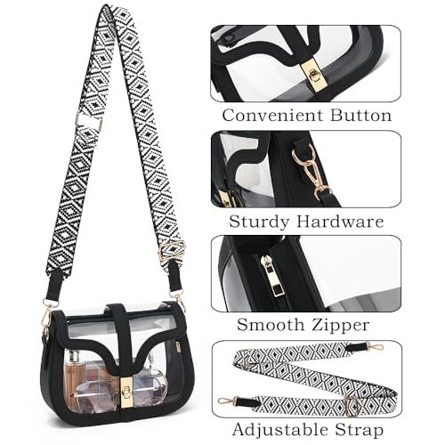 Origin: ImportedClosure type: ZipperStadium Approved Clear Bag οΌSized at 8.86L x 2.56W x 6.3H, this clear crossbody bag for women is stadium approved, making it the perfect companion for all your stadium - related activities. Whether it's a thrilling sports game, an exciting concert, or a fun - filled festival, this stadium bag complies with clear bag policies, ensuring you breeze through securityComfortable Clear Purses for Women: Designed with women in mind, this clear purse for women comes with a wide, adjustable guitar strap. You can effortlessly convert it from a crossbody to a shoulder bag, offering maximum comfort for all - day wear.fashionable Clear Stadium Bag: Crafted from durable plastic PVC and faux leather - trimmed edges, this isn't just any clear stadium bag; it's a fashion statement. Its compact and elegant design allows it to pair seamlessly with both casual and dressy outfits.Spacious Clear Bags for Women: The main pocket of this clear stadium bag features a smooth zipper closure. Despite its compact size, it has ample space to hold all your necessities,ensuring hassle-free entry while staying lightweight.Must Have for Events or Travel: The perfect clear bag for stadium events is lightweight, spacious, and compliant. A game-day essential for quick security checks and hands-free convenience! Perfect for everyday use. finest materials and excellent craftsmanship ensure long-lasting durability.
