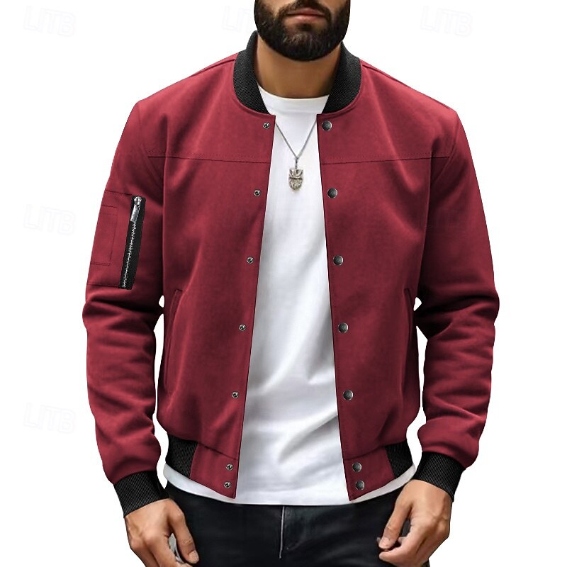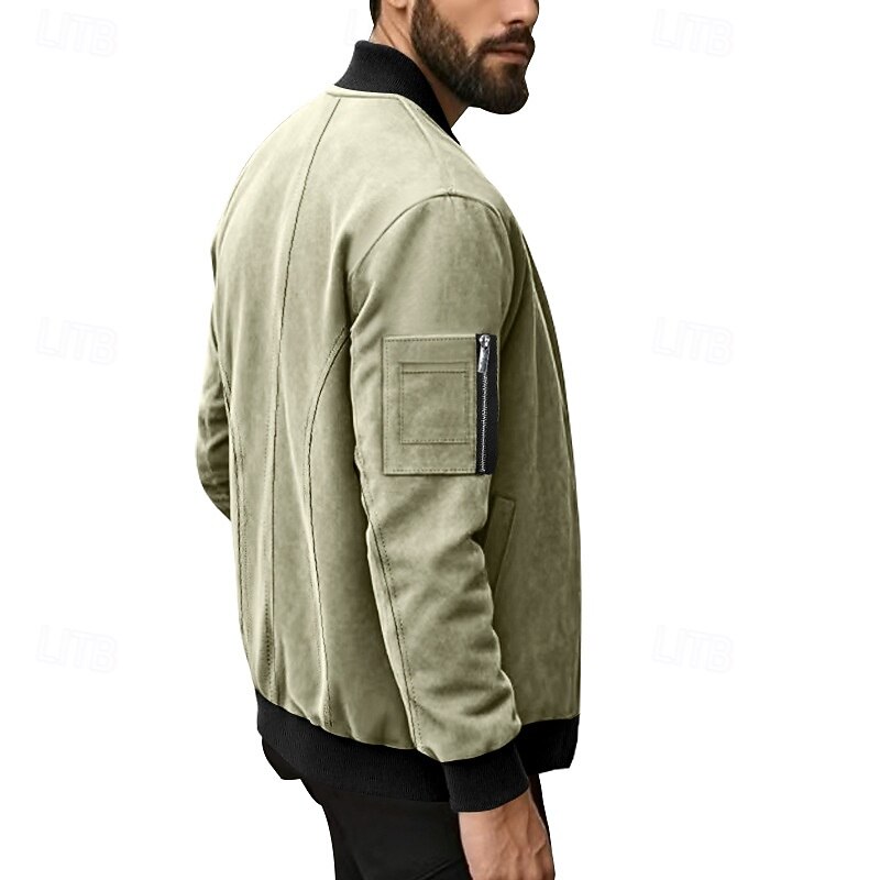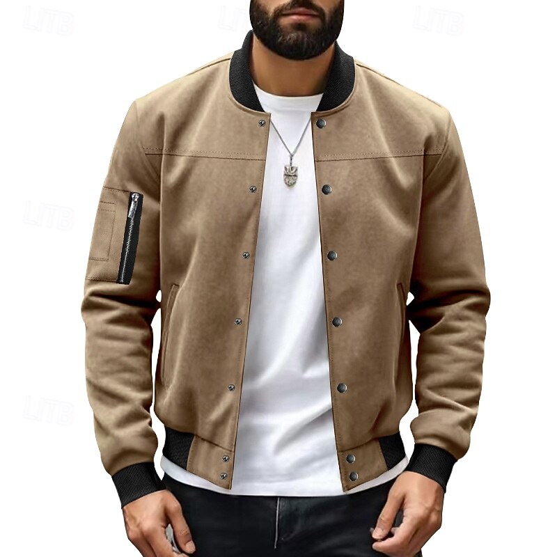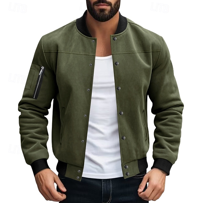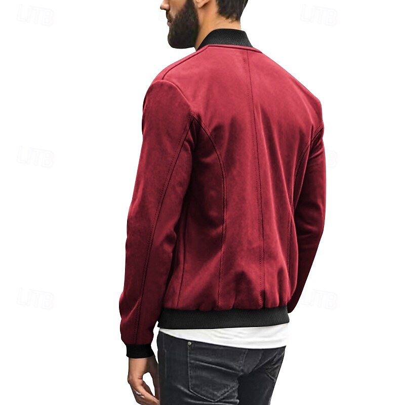 Why Choose Men's Lightweight Jacket Summer Jacket Bomber Jacket Windbreaker Vacation Daily Wearproof Pocket Spring Fall Plain Fashion retro Stand Collar Regular Black Light Green Red Navy Blue Brown Jacket?