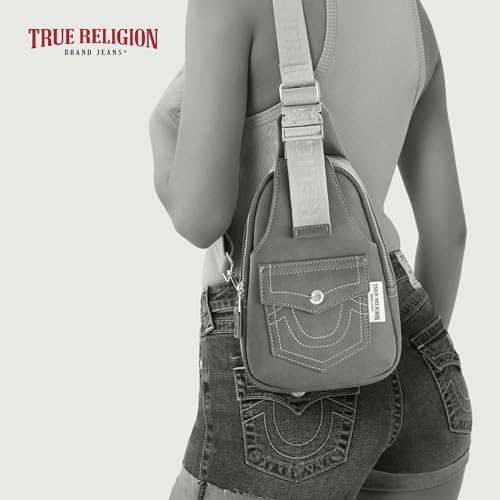 True Religion Women's Sling Bag, Denim Small Travel Backpack with Adjustable Shoulder Crossbody Strap and Front Pocket, Denim