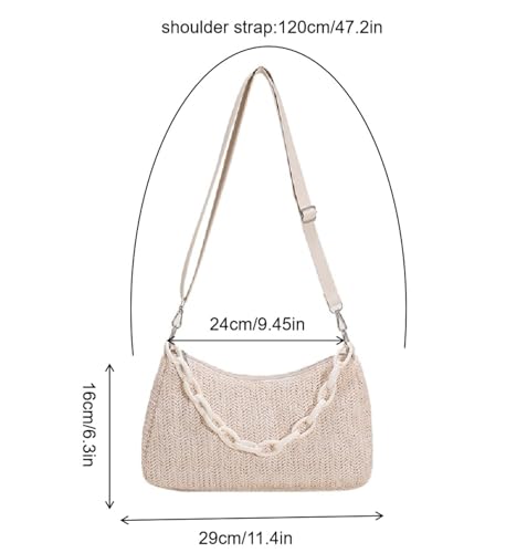 【fashionable AND TRENDY SHOULDER BAG】This Straw Crossbody Bag is a fashionable accessory that can easily elevate any outfit. Its boho woven design and soft surface material make it a trendy choice for women of all ages.【SPACIOUS AND PRACTICAL】With dimensions of 29*16*7cm/11.4*6.7*2.75 inches, this hand-woven shoulder bag offers ample space to carry your essentials. The interior lining, made of polyester, ensures durability, while the zipper closure keeps your belongings secure.【ADJUSTABLE STRAP FOR COMFORT】The shoulder strap of this bag is adjustable, allowing you to find the perfect fit for your body type and preferred carrying style. Whether you prefer to wear it as a crossbody or on your shoulder, this bag provides versatility and comfort.【IDEAL GIFT CHOICE】Whether you're looking for a gift for a friend, sister, or yourself, these straw purses are a great choice. The unique and fashionable design combined with the practicality of the bag makes it a versatile accessory that can be enjoyed by anyone.【CASUAL AND CHIC】This straw purse effortlessly combines casual and stylish elements, making it suitable for various occasions. Whether you're heading to the beach, running errands, or going out with friends, this bag is a perfect accessory to complete your look. Perfect for everyday use. finest materials and excellent craftsmanship ensure long-lasting durability.