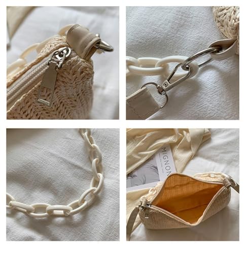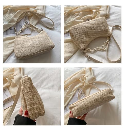 Straw Purses for Women, Boho Woven Straw Crossbody Bag, Hand-Woven Shoulder Bag with Zipper (beige)