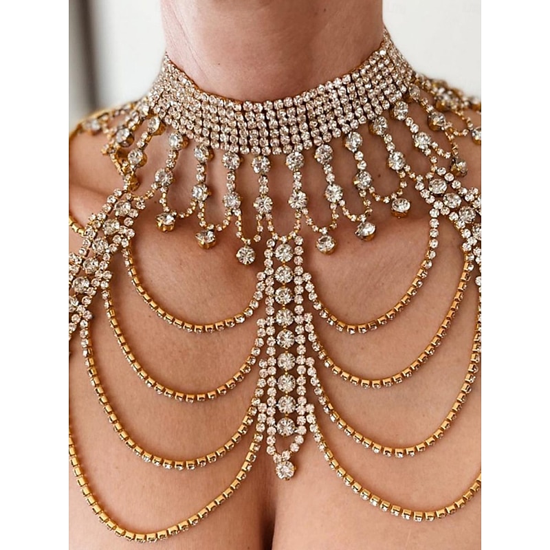 $46.99 - Women's Gold Rhinestone Shoulder Chain Necklace - Luxury Multi-Layer Statement Jewelry for Formal Parties and Evening Events 2025. Shop for cheap Women's Necklace online? Buy at lightinthebox.com on sale today!
