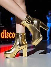 This Women's 1980s Disco Platform Ankle Boots – Shiny Gold Faux Leather Heeled Booties with Side Zipper and Buckle Strap for Retro Party Night Out and Nightlife Looks combines elegant design with practical functionality. Every detail has been carefully considered to ensure you get the foremost possible experience. The supreme construction means this product will serve you well for years to come.