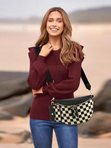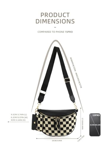 Checkered Crossbody Bags for Women Bum Bag Hobo Satchels Shoulder Wallet Purses