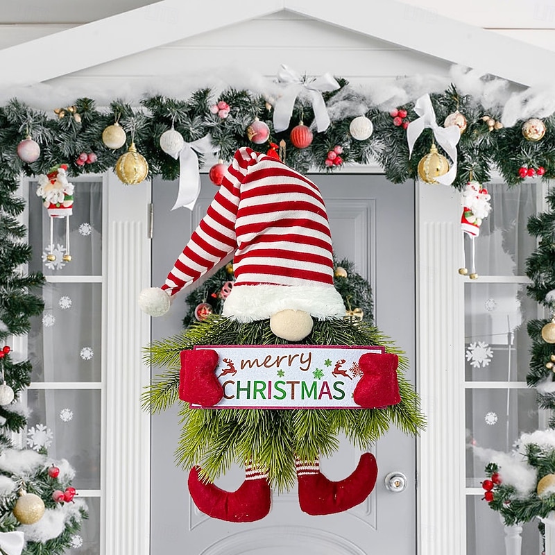 $23.99 - Christmas Gnome Wreath for Front Door Outdoor Door Winter Wreath Sign, Decorative Elf Hanging Ornament for Front Door, Festive Wall Decor for Holiday Season, Indoor Christmas Wreath 2025. Shop for cheap Wreaths, Garlands & Swags online? Buy at lightinthebox.com on sale today!